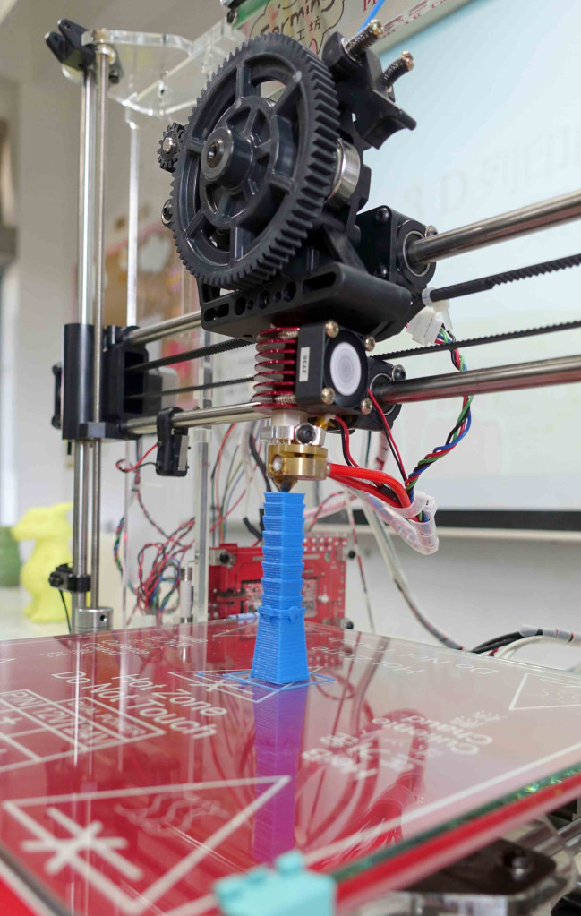 雖然台灣有很多業者都製造3D列印機台,但謝馨嬁的想法很特別,「我主攻教學用,所以我的機台沒有外殼,可以從360度全面看到每一個角度,這是台灣20cmX20cm機種的唯一。教學的老師可以清楚的指出馬達、皮帶、齒輪等零件,讓學生更清楚製作過程中,每個元件的功能性,而且去除外殼後,機台淨重不到八公斤,方便機動攜帶。」