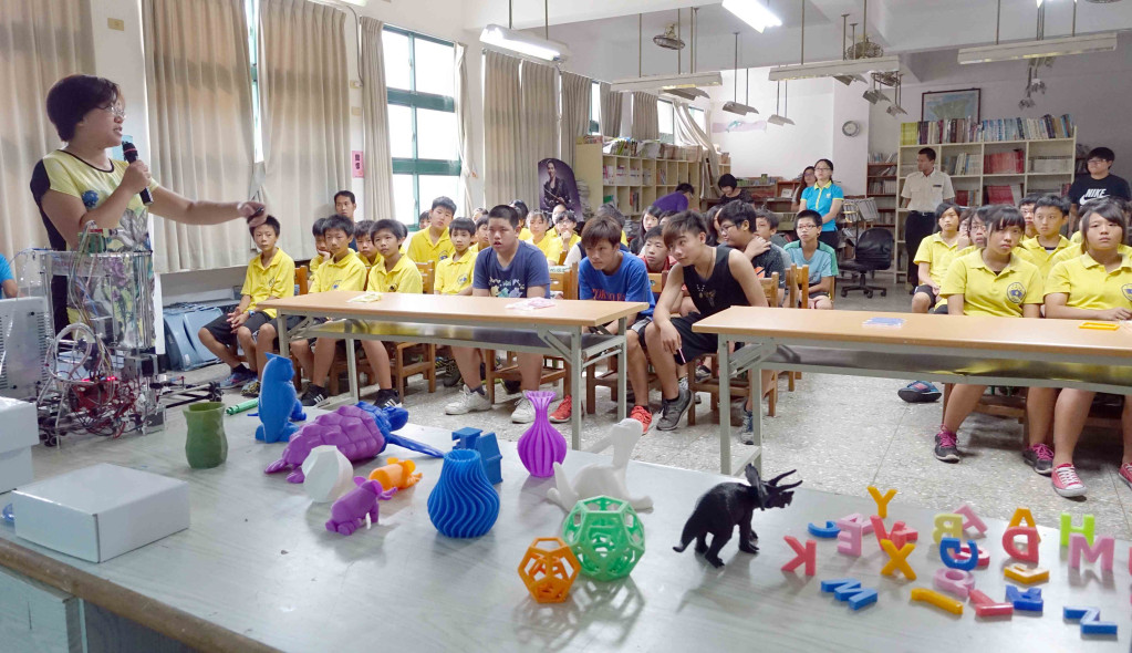 立體的101大樓只要六十分鐘就列印出來,學生看得驚訝,但更感動於謝馨嬁老師想要用3D列印技術翻轉偏鄉教育的決心。(記者蔡育豪攝影)